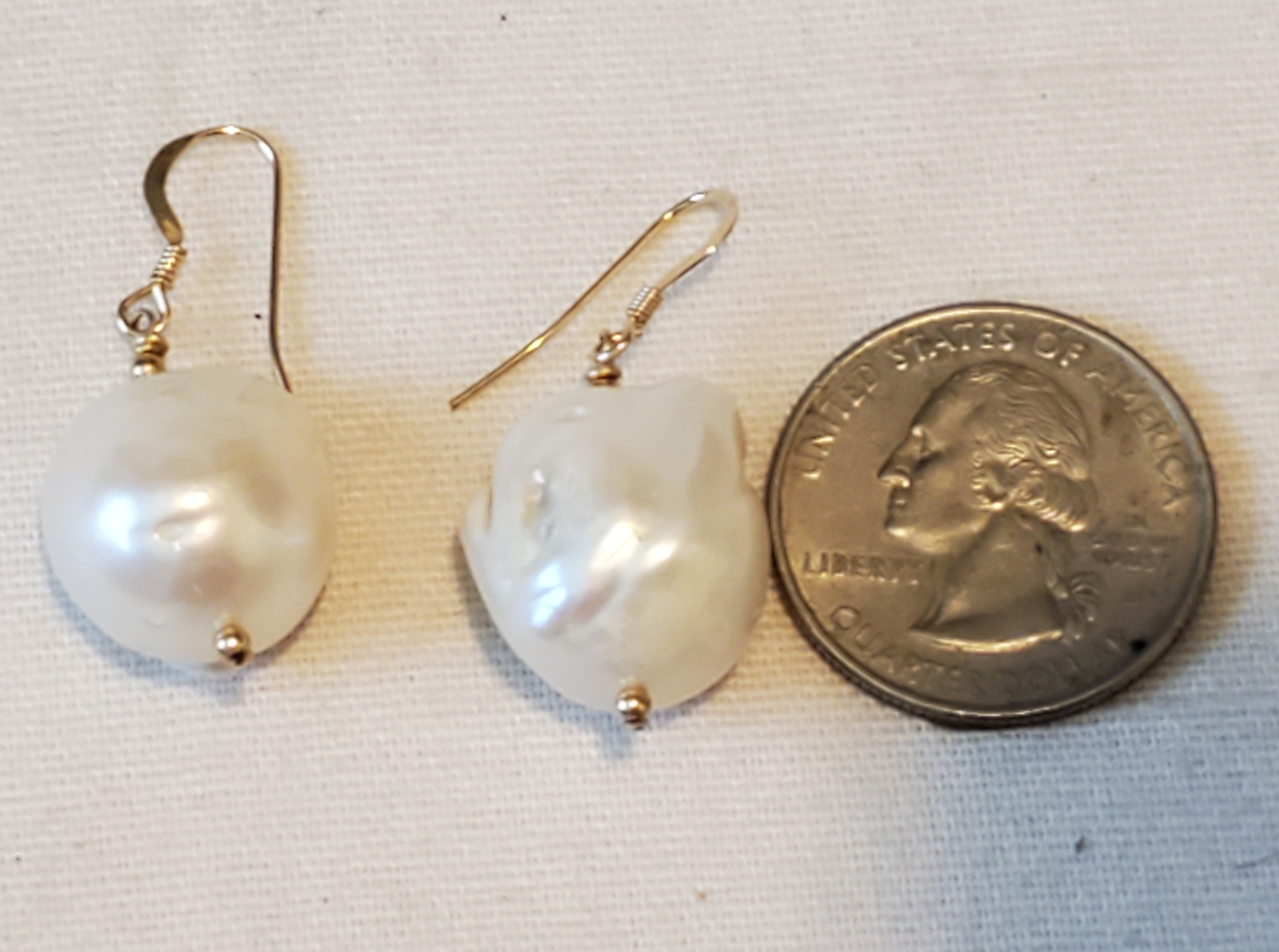 Introducing our stunning Keski pearl earrings, the epitome of elegance and sophistication. Measuring 18mm x 16mm, these gently sloping drop earrings feature lustrous and perfectly round white Keski pearls that are beautifully complemented by the warm glow of 14k gold. The pearls are carefully handpicked for their exceptional quality and unmatched radiance, making them an ideal choice for any formal occasion or everyday wear. Crafted with utmost precision and care, these earrings boast a timeless design that will stand the test of time. The pearls are securely nestled in delicate prongs, ensuring they stay in place while you go about your day. The shimmering gold finish adds a touch of understated luxury, making these earrings the perfect accessory for any ensemble. Whether you are looking for a stunning pair of earrings to wear to a gala event or simply want a classic and sophisticated pair of pearls to wear every day, these Keski pearl earrings are the perfect choice. Order yours today and experience the difference that only the finest Keski pearls and 14k gold can make!