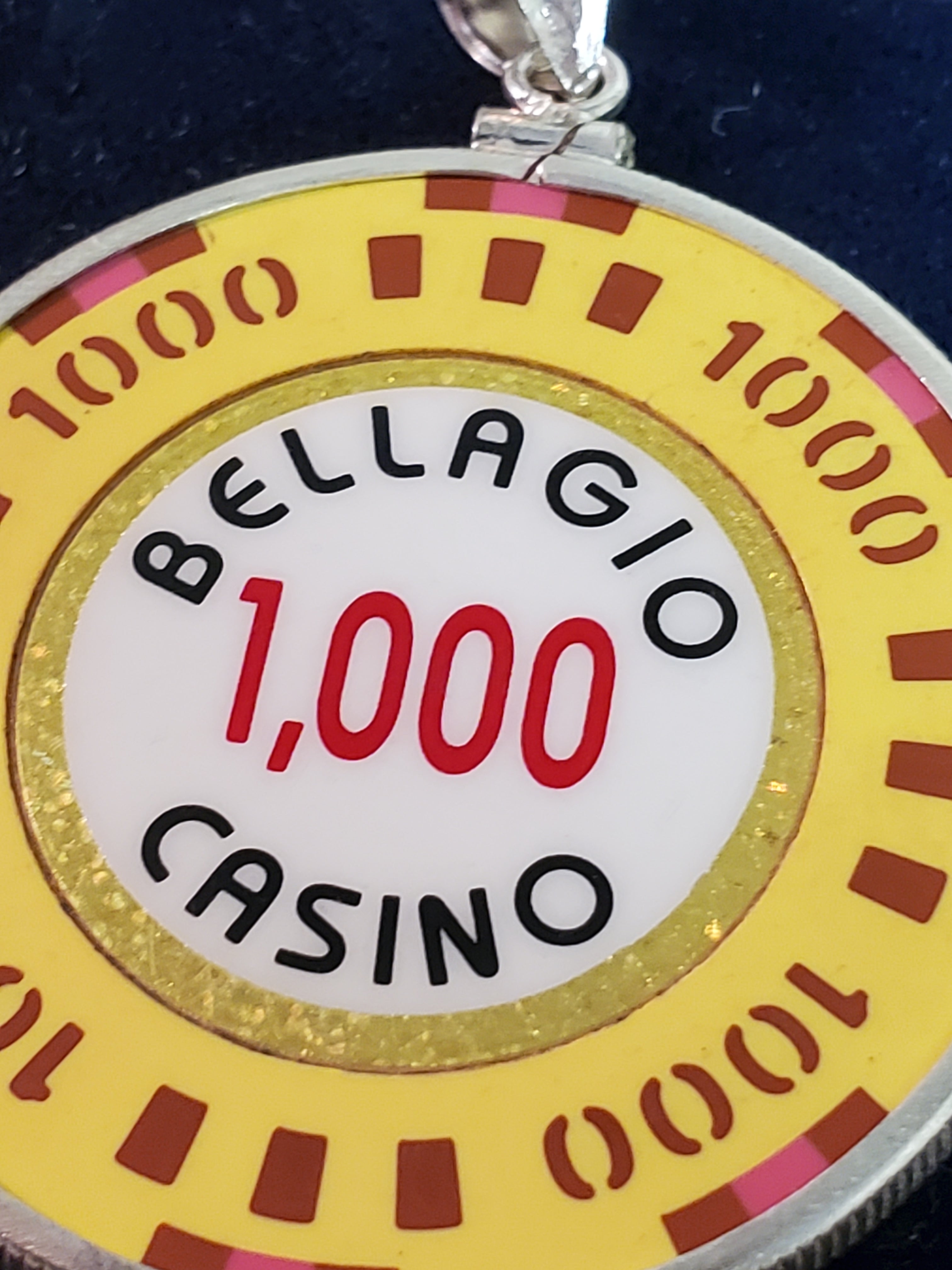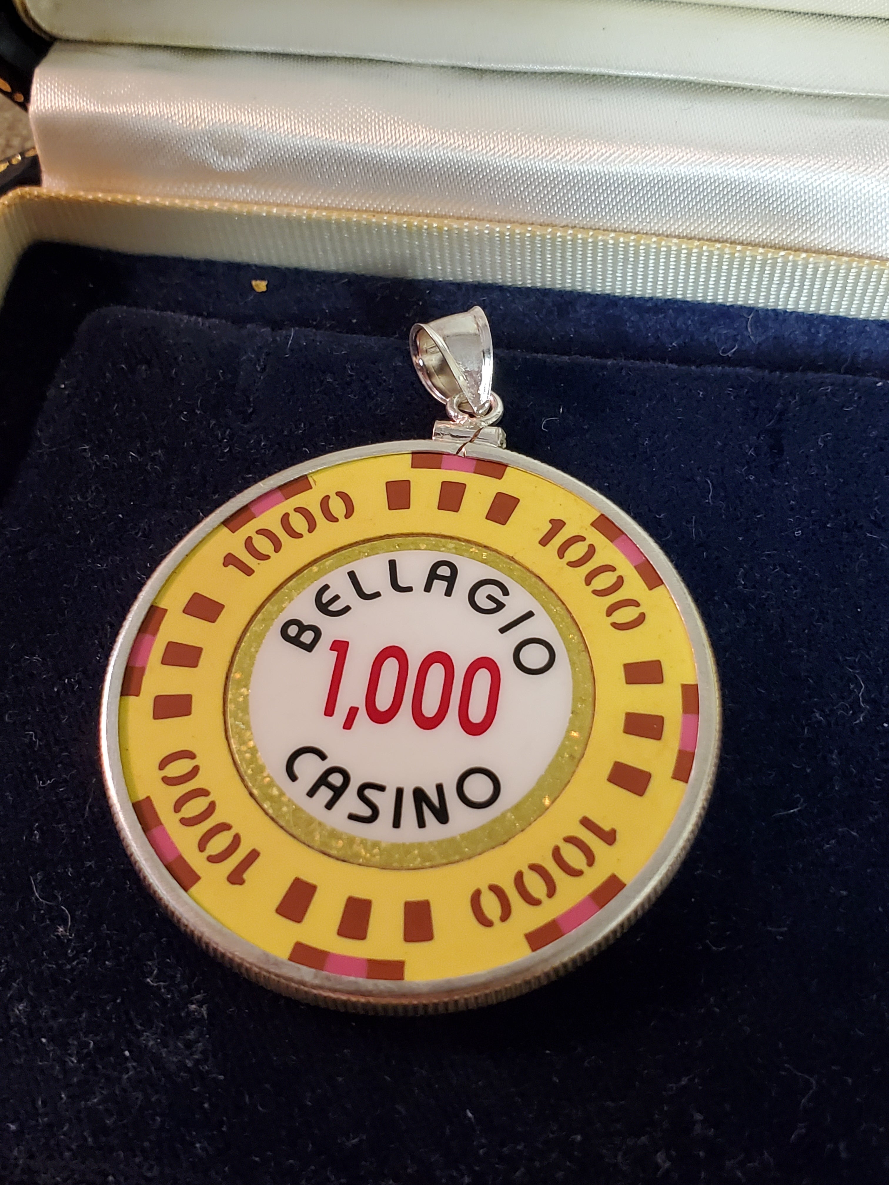 Bellagio 1000 gaming chip pendant, sterling bezel