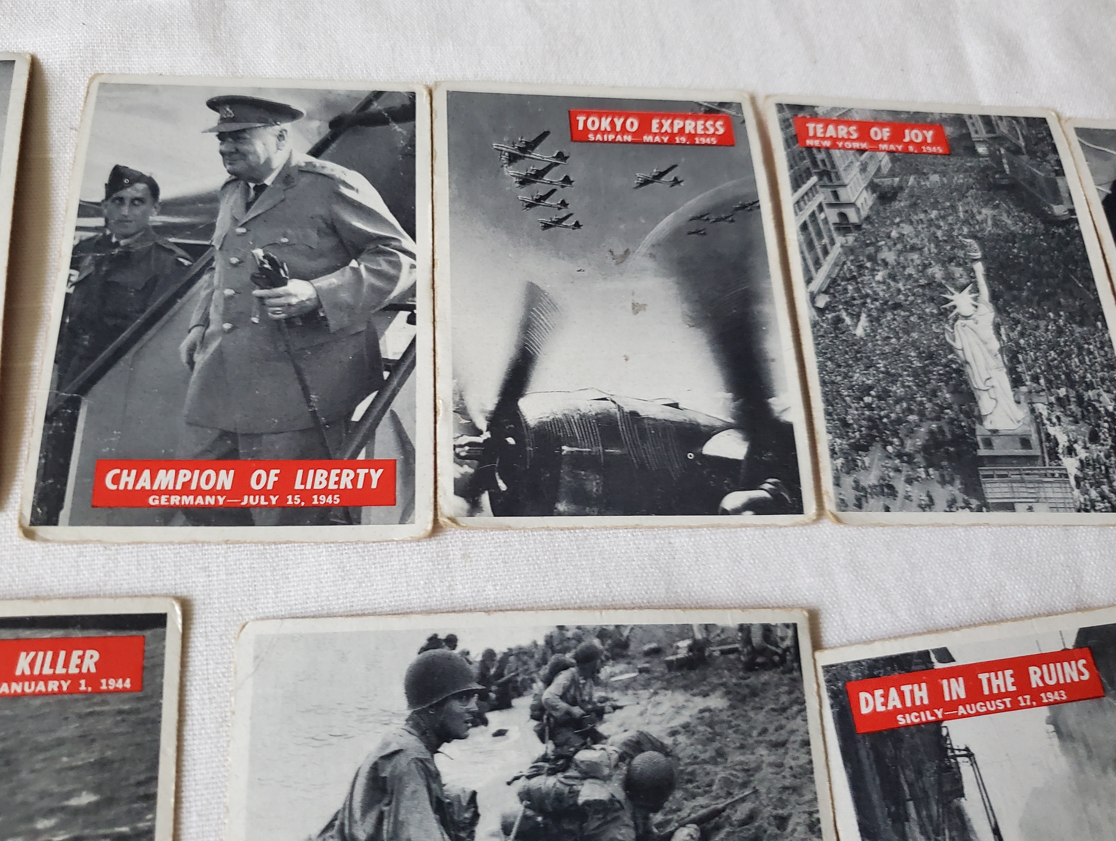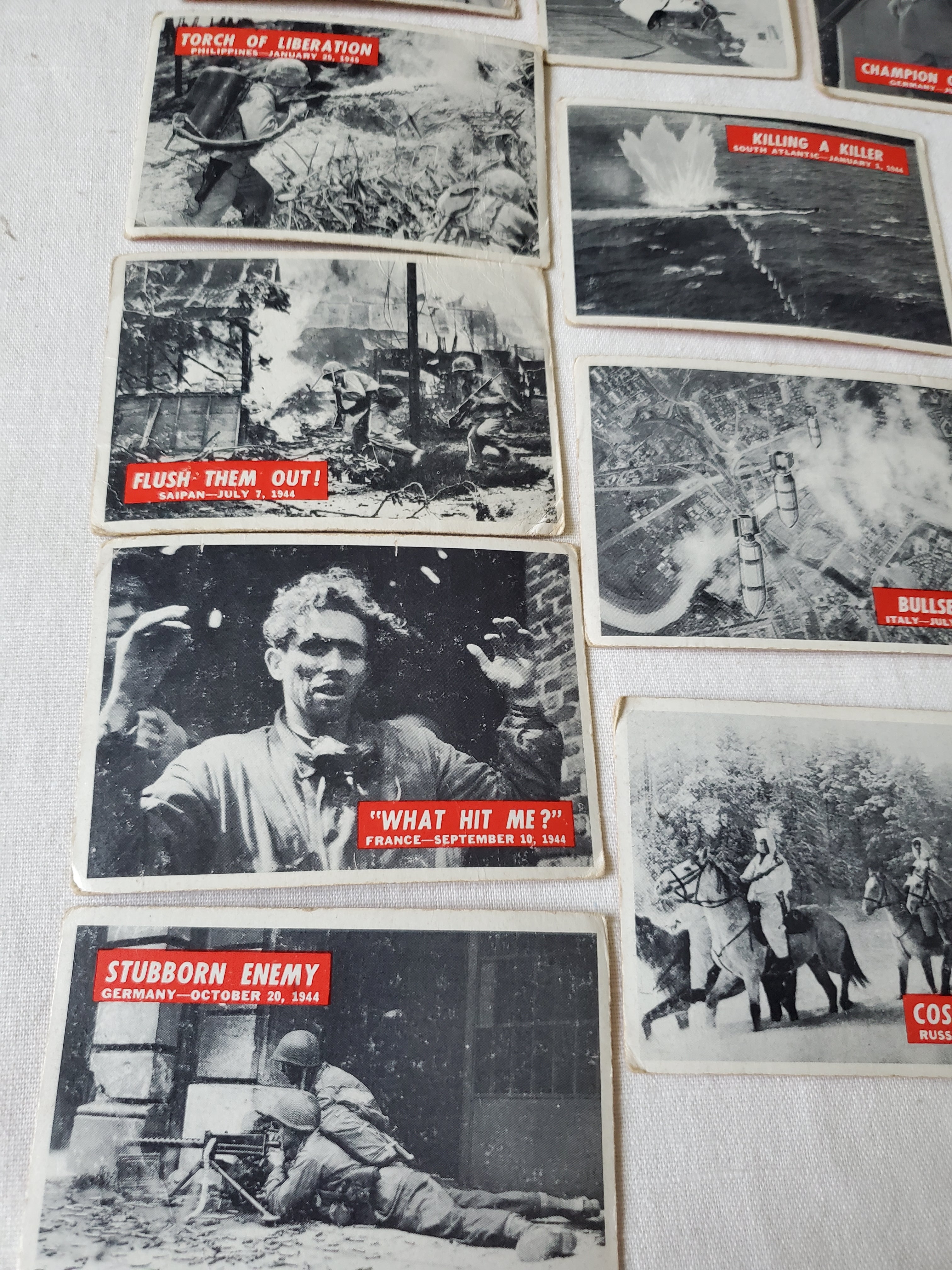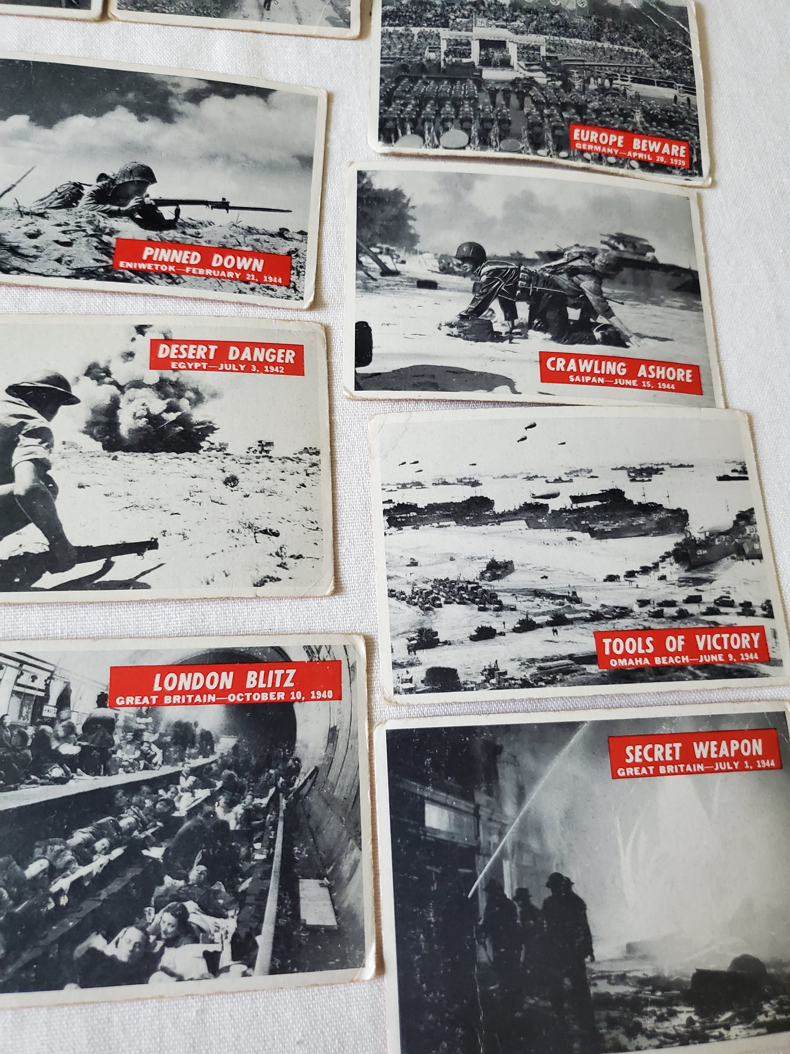 This is a lot of 30 PCGC WWII Military Cards from 1967. They are all in pretty good condition especially for their age. They include photos from the US Signal Corps, The Marine Corps, United Press, US Air Force, Wide World, US Navy and US Coast Guard. All are the size of regular Baseball cards.