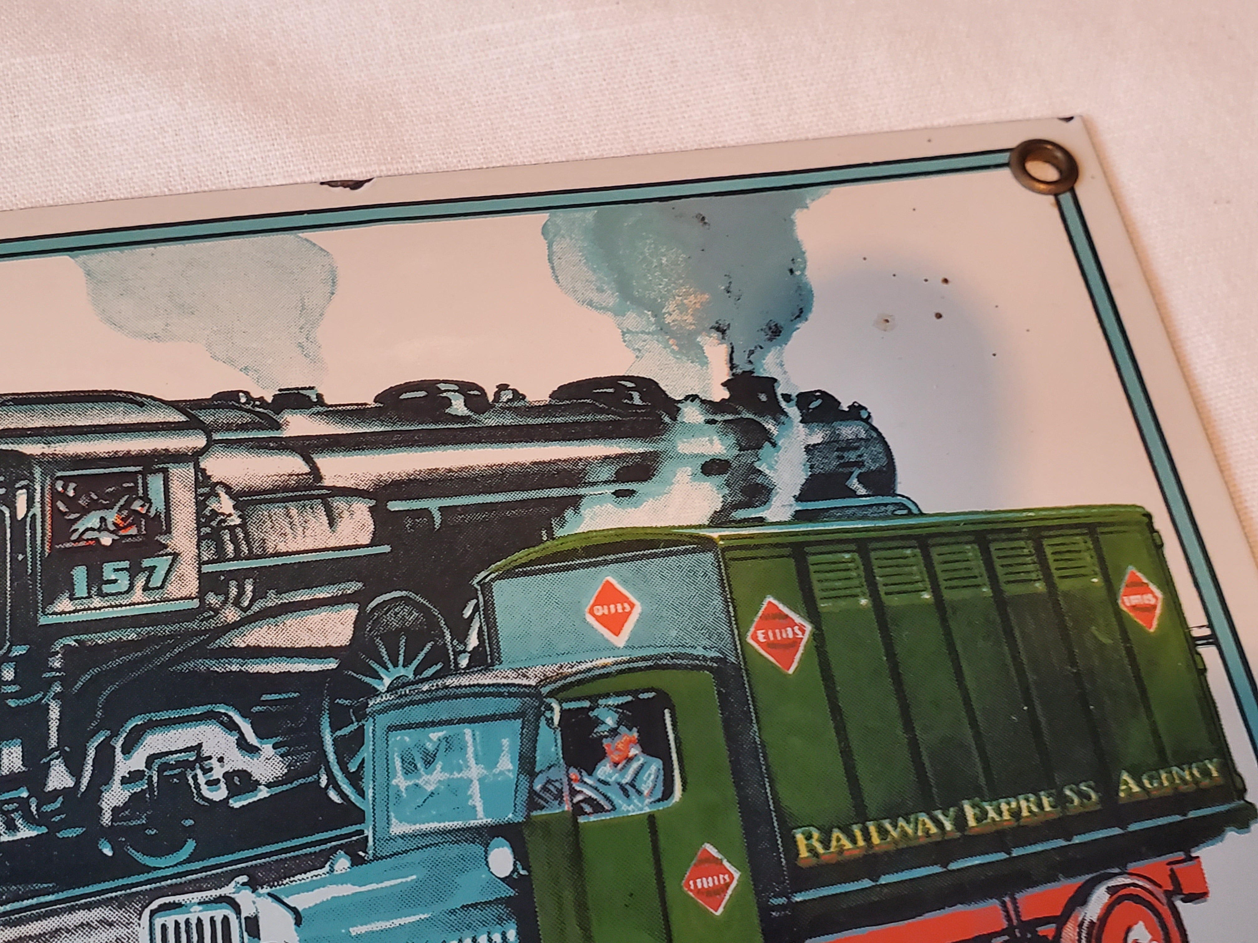Railway Express Agency Dependable Service porcelain sign Post Calliope 1984