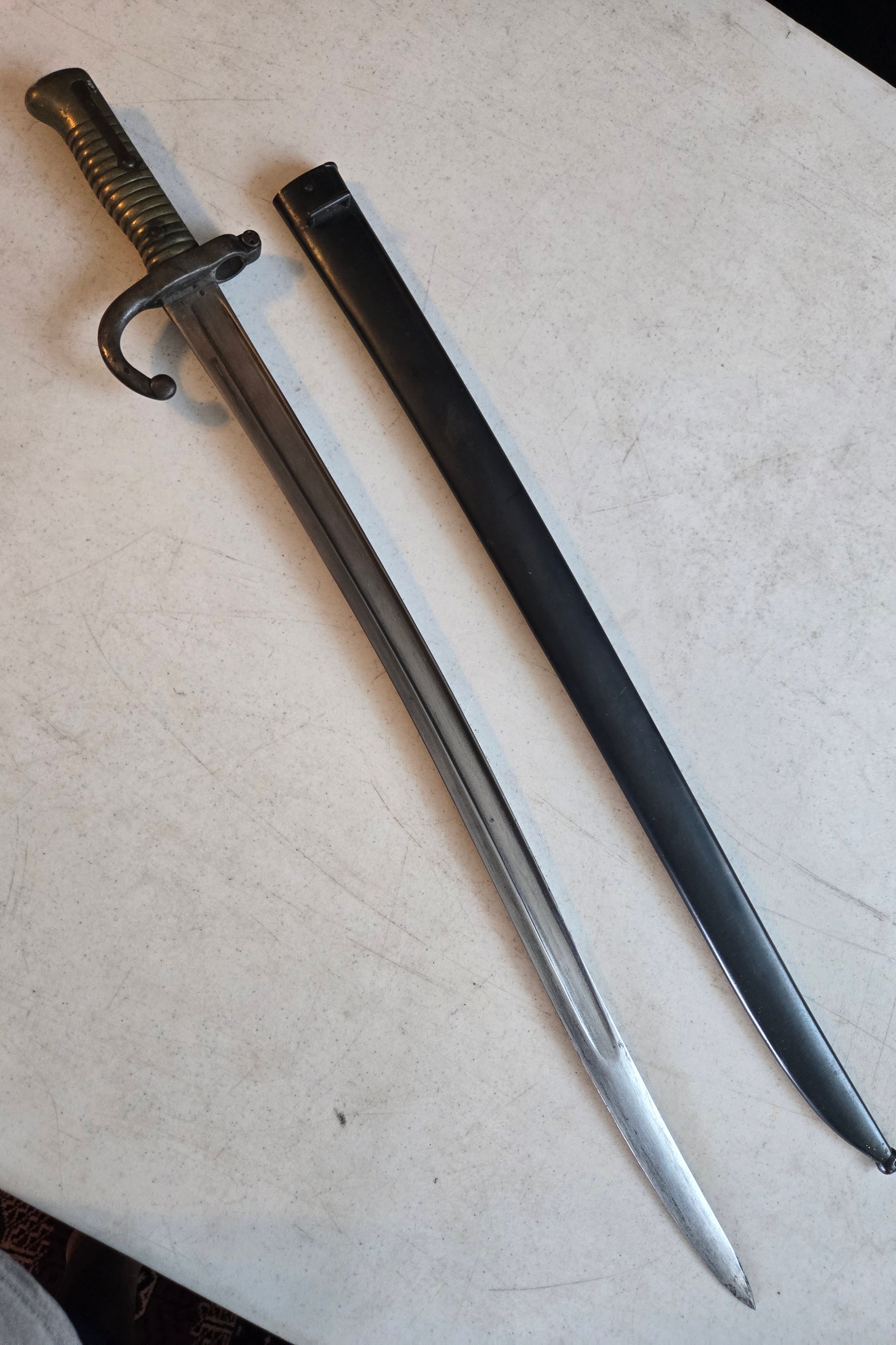 French model Chassepot St. Etienne Sword Bayonet matching scabbard dated 1872
