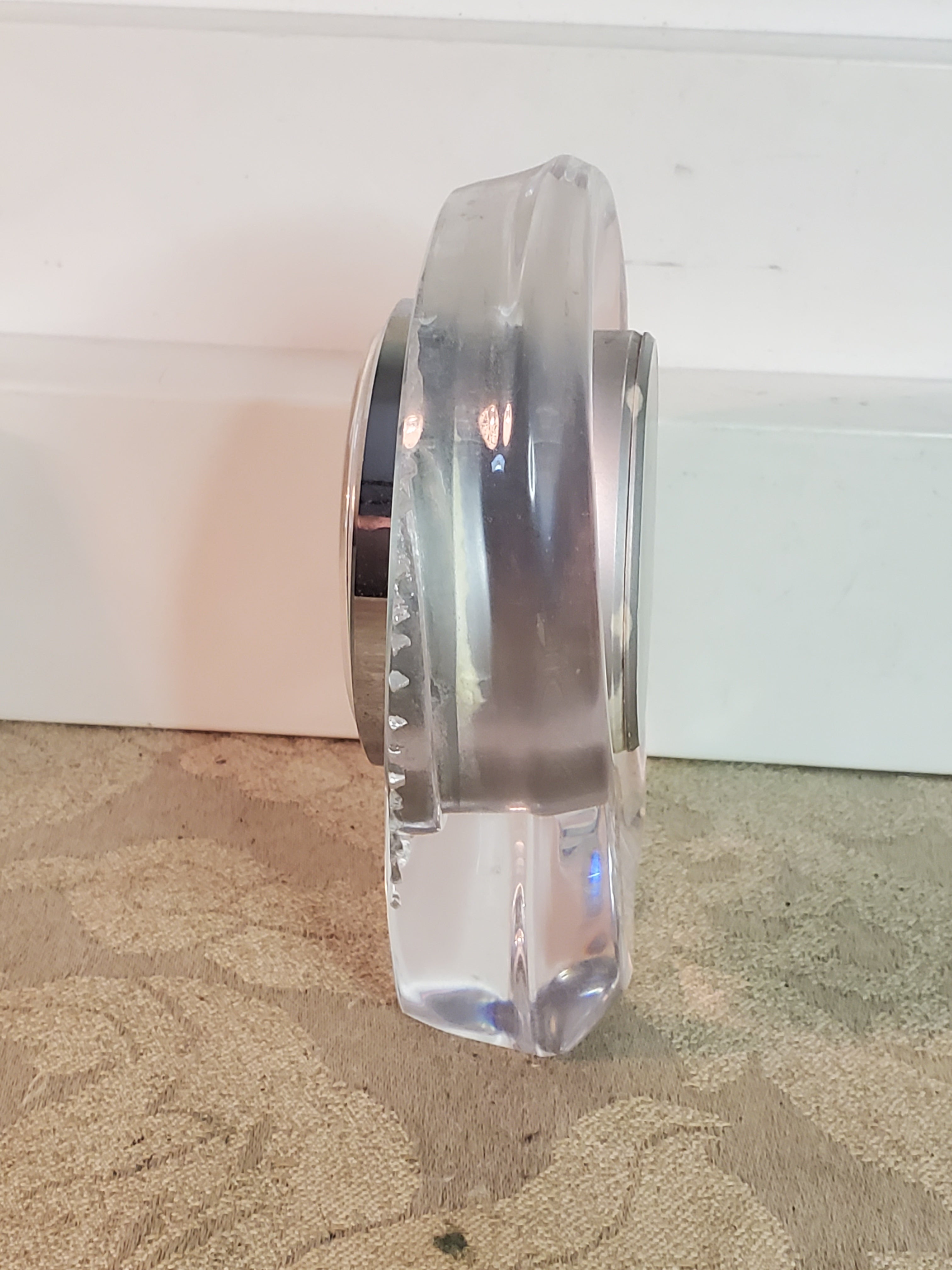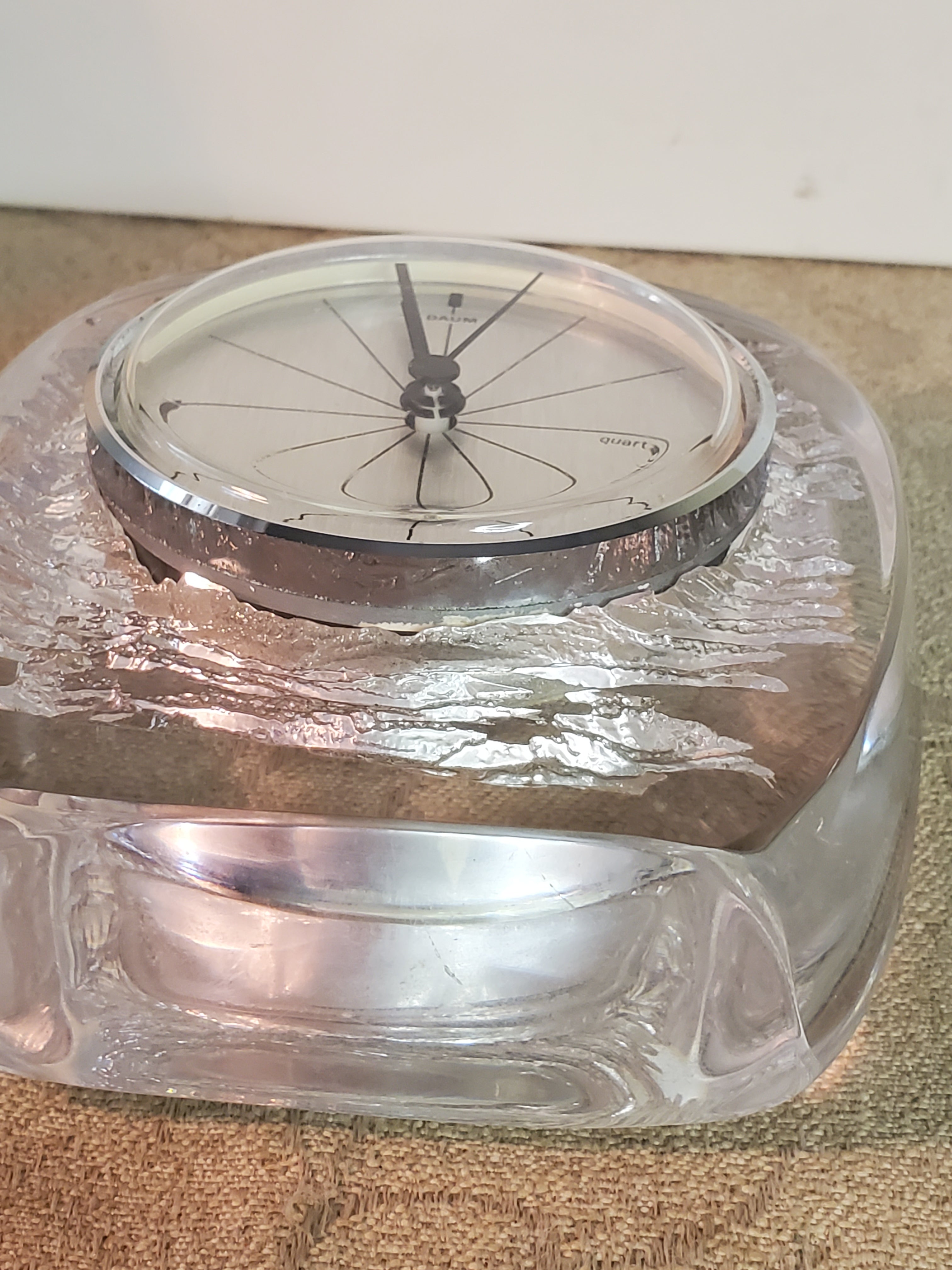 Daum etched crystal Swiss Clock, working.