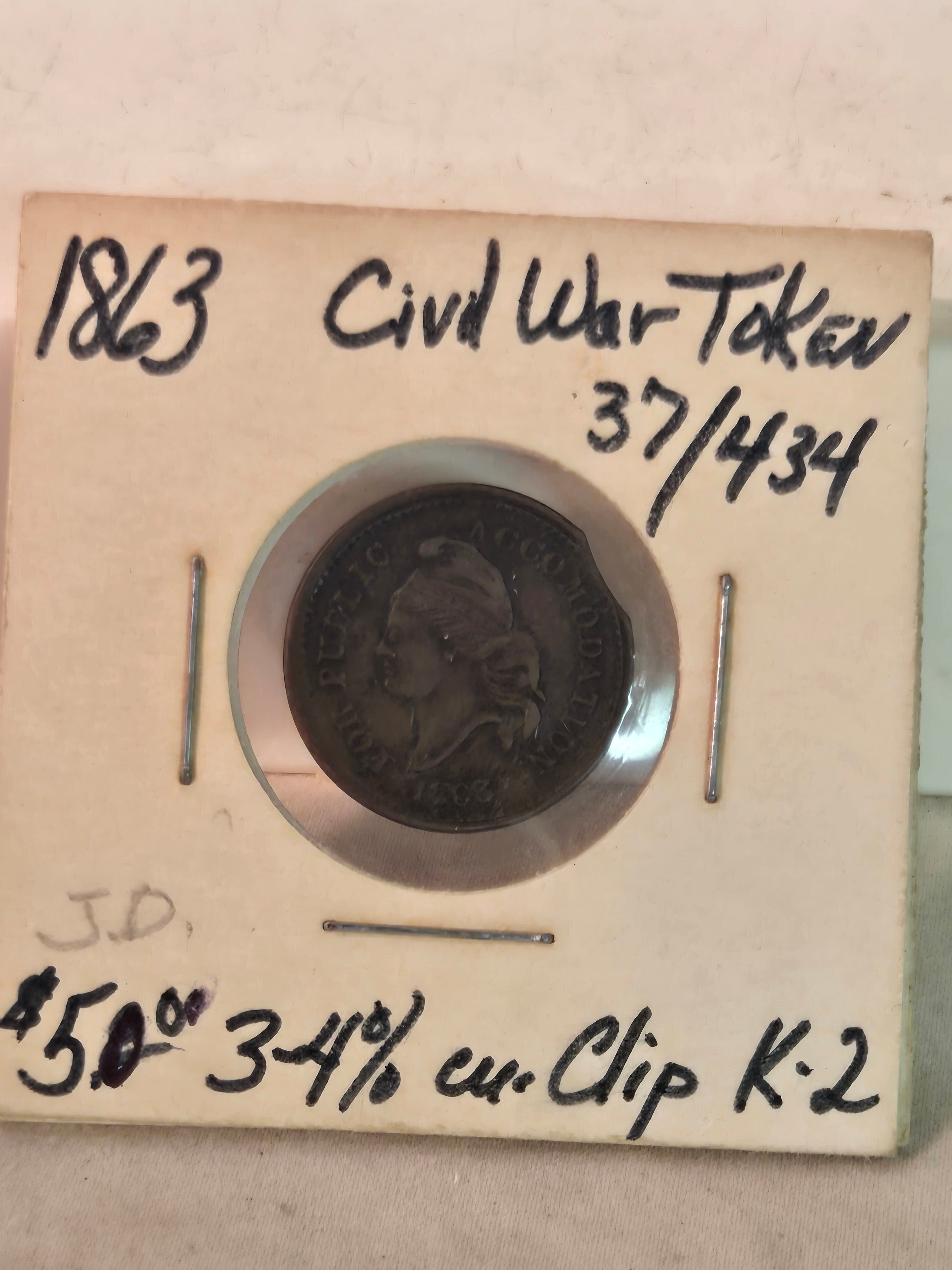 1863 Civil War Token For Public Accomodation 37/434 4% clip