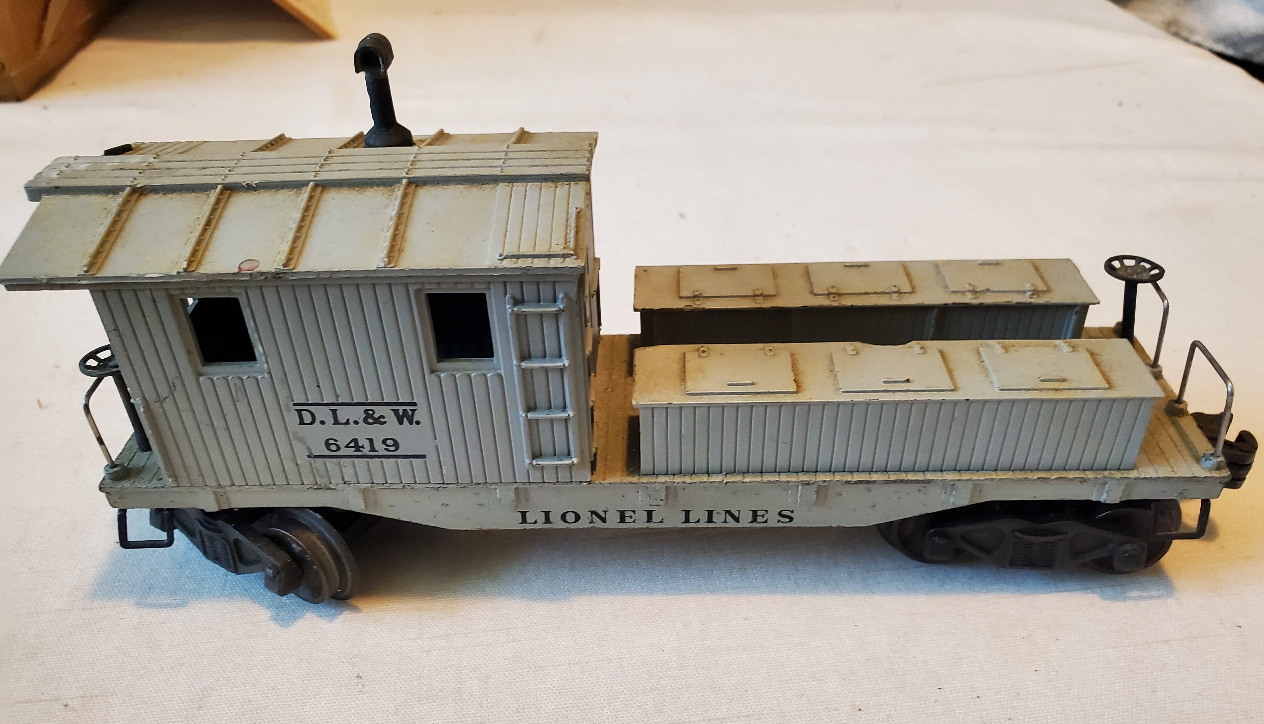 Thus is a Wrecking Work Car or Caboose for the Delaware, Lackawanna & Western Railroad #6419, made in O Gauge post-war by the Lionel Lines Company c.1948-50. No box and could use a good cleaning. It will make a great addition to any model train or railroad set or collection